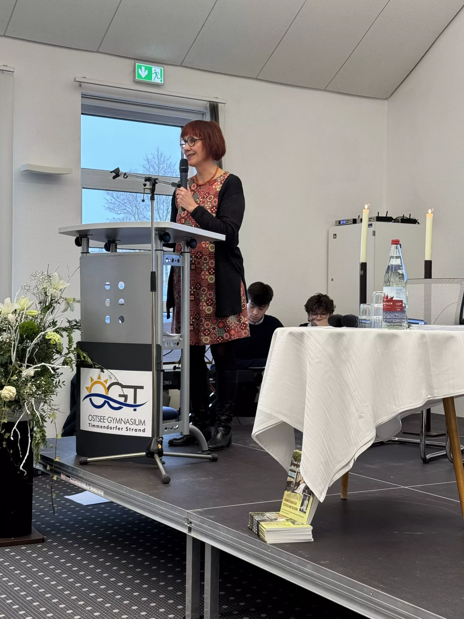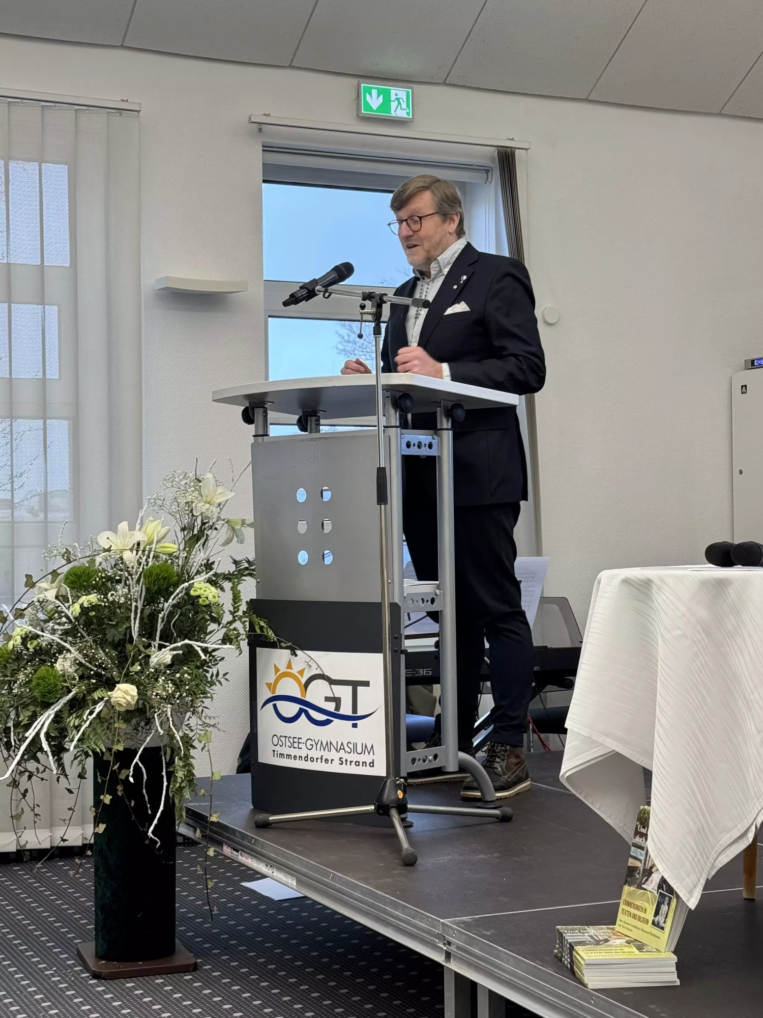 Anschließend begrüßten Frau Dr. Braun und unser Timmendorfer Bürgermeister Herr Partheil- Böhnke die geladenen Gäste und uns Schülerinnen und Schüler.