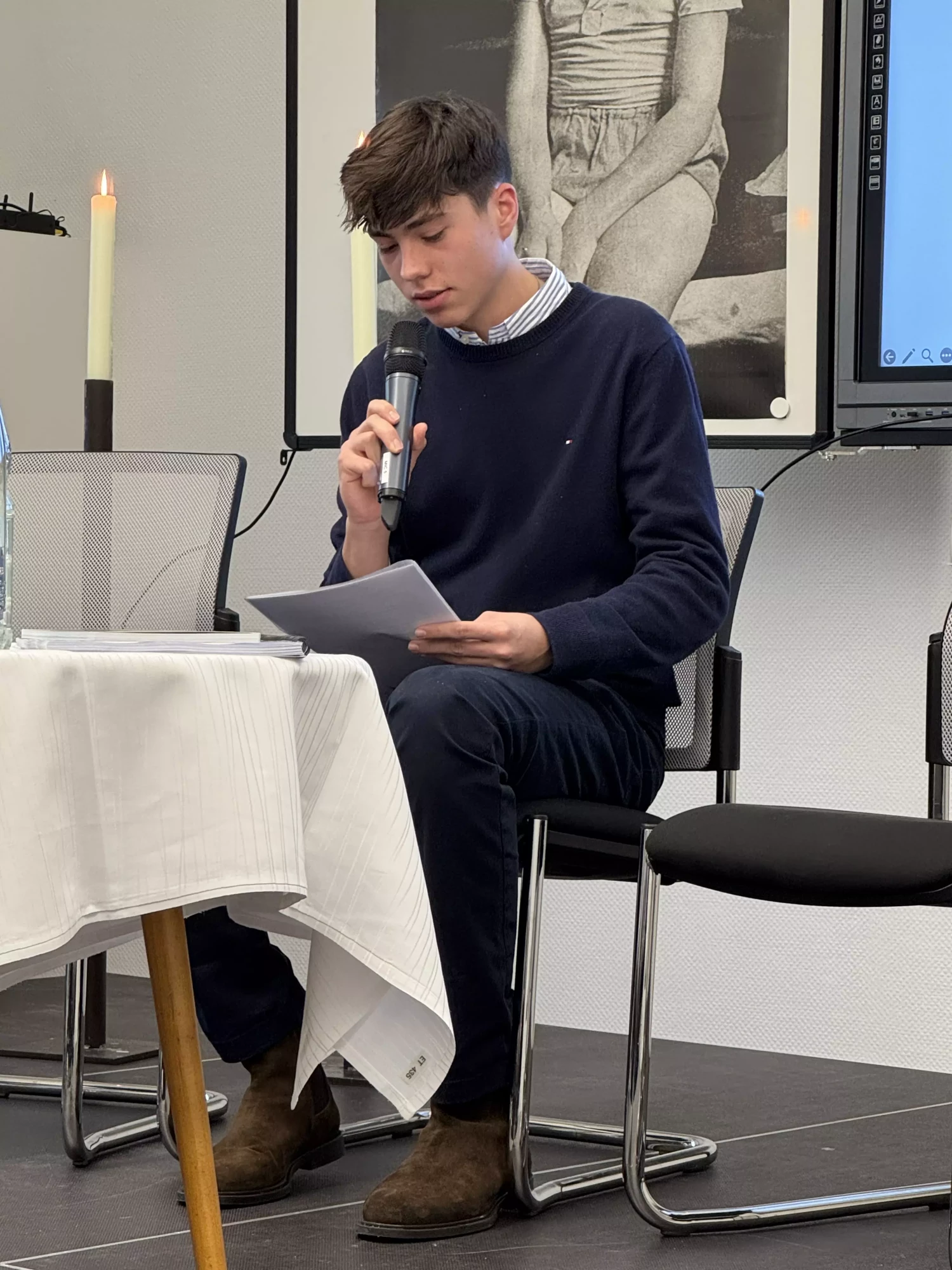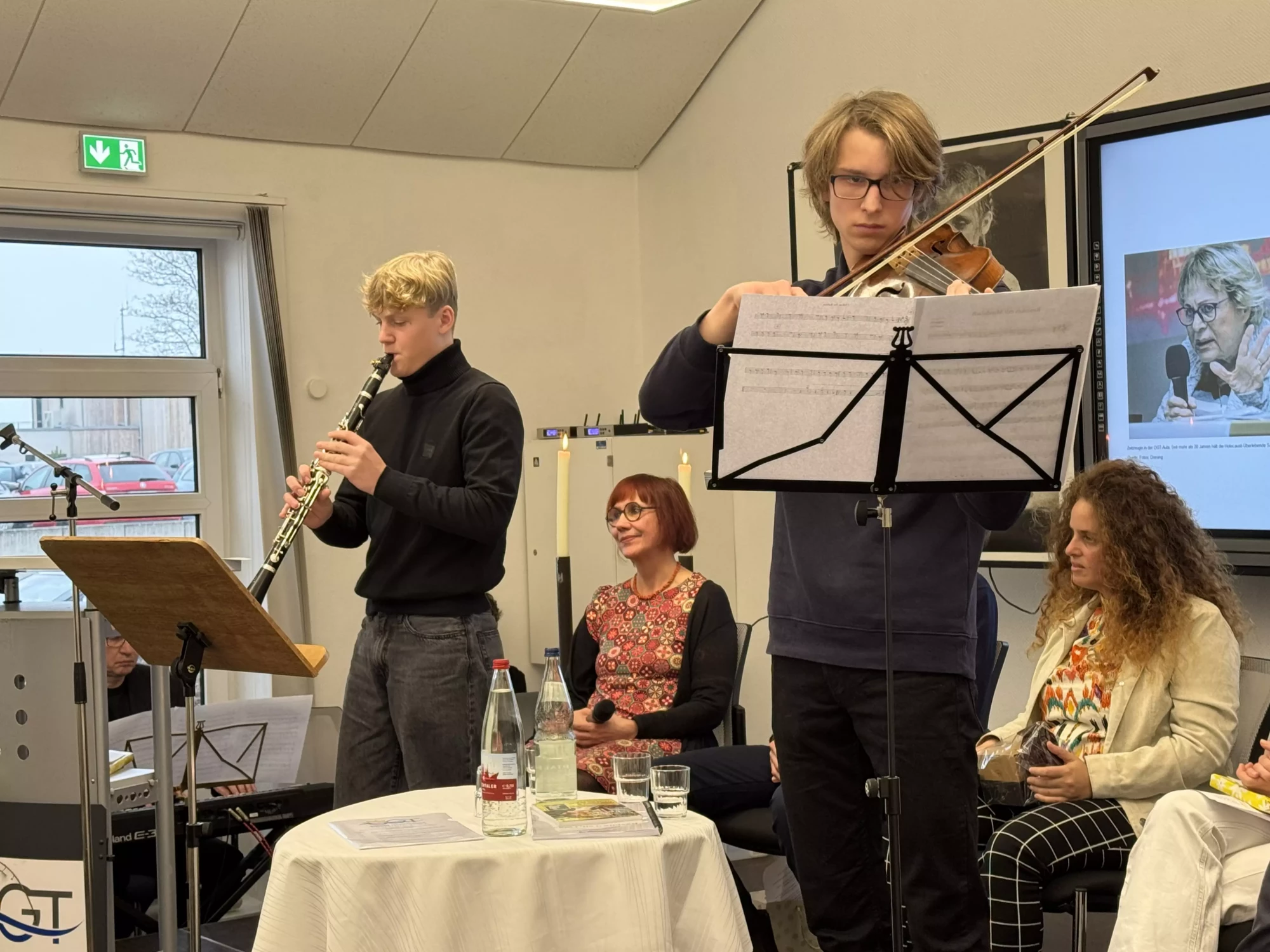 Die Veranstaltung wurde durch Noah Werner an der Geige und Johann Brede an der Klarinette unter Leitung unseres Musiklehrers Dr. Ster musikalisch eröffnet.