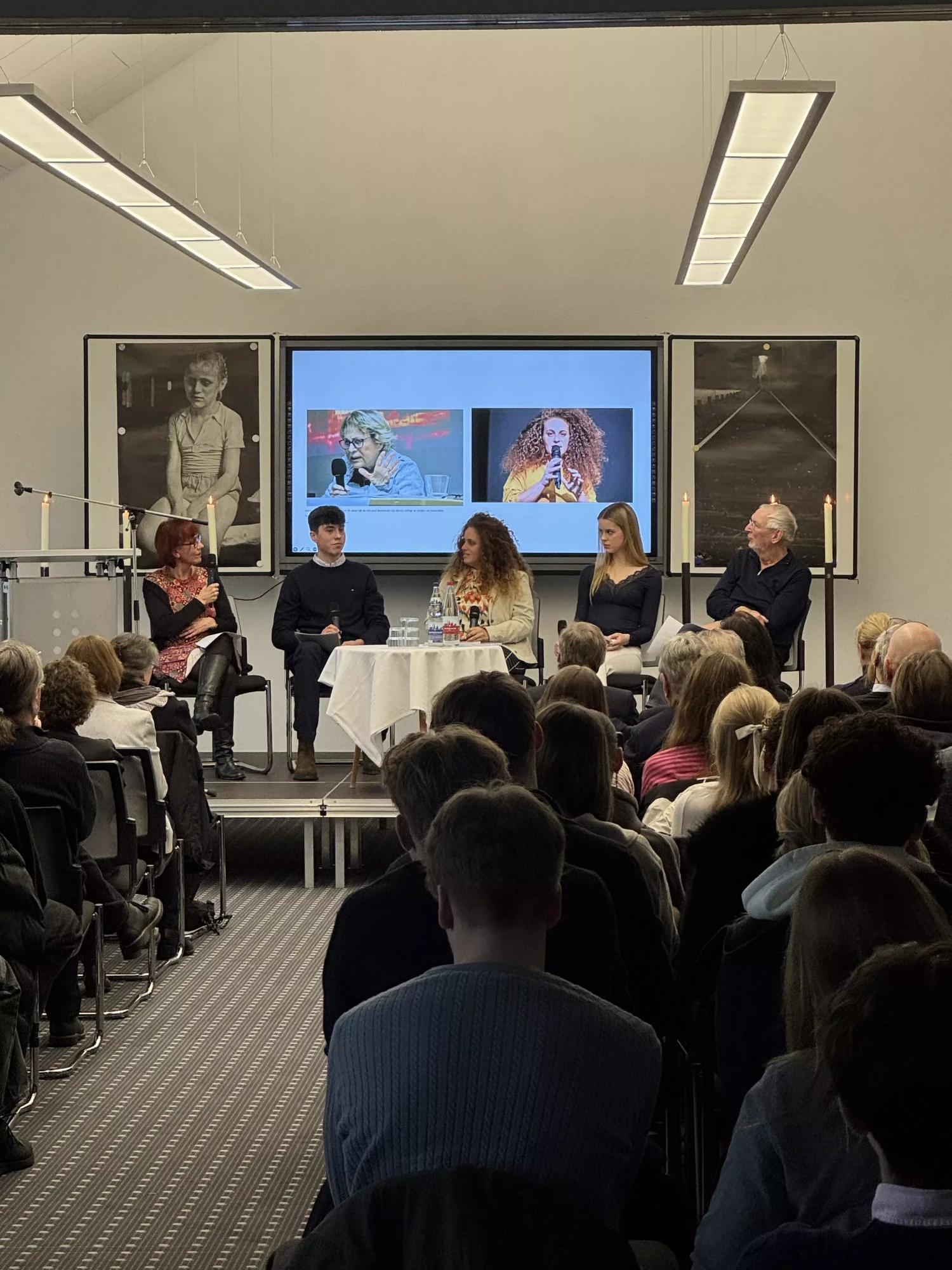 Zunächst stellten die Mitglieder des Podiums einige Fragen, dann wurden Fragen aus dem Publikum ermöglicht, viele Schülerinnen und Schüler machten von dieser Möglichkeit Gebrauch. So fragte ein Schüler, wir wissen alle, was der Holocaust war, aber was können wir tun, damit das nicht in Vergessenheit gerät. Das war der Moment, an dem Yael deutsch sprach – sie nannte nur ein Wort, nämlich sie sagte: REDEN REDEN REDEN.
